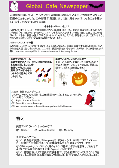 グローバルクラブでALT主催によるハロウィンイベントを実施しました。