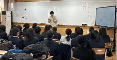 生徒は英語の授業の中で「伝えたい日本文化」について調べ、英語によるプレゼンテーションを準備し、当日は留学生に披露しました。