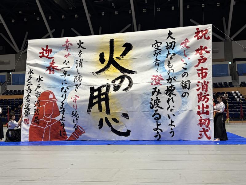 1月11日(日)にアダストリアみとアリーナで開催された、水戸市消防の出初式で書道パフォーマンスを披露いたしました!