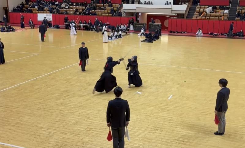 先鋒二本勝ち、次鋒一本勝ち、中堅一本先取と勝利の直前までいきましたが、そこから返され、最終的に代表決定戦へ。惜しくも負けてしまいましたが、強敵を相手に一歩も引かず、会場を沸かせる良い試合ができました。来年は関東へ。