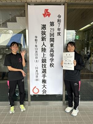令和7年度茨城県陸上新人大会が9月18日(木)~20日(土)に水戸信用金庫スタジアムで行われ、4×400mR、800m、100mH、400mH、5000mW、棒高跳にて8位入賞、女子総合6位入賞を果たしました。その中で上位3位に入賞した選手が、10月18日、19日に、山梨県甲府市のJITリサイクルインクスタジアムで行われます「令和7年度関東高等学校選抜新人陸上競技選手権大会」に出場します。結果は以下のとおりです。